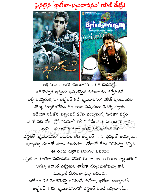 KHALEJA AND BRINDAVANAM MOVIE DATES